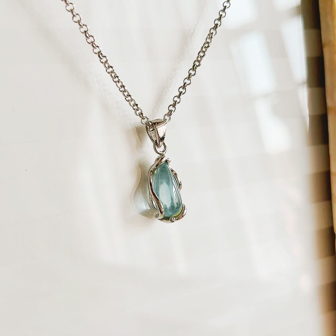 シルバ925のアクアマリンネックレス 希少価値のある透明度の高いアクアマリンを使用したネックレスです。 長さ調節可能 標準は50cm